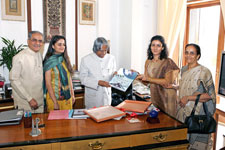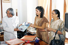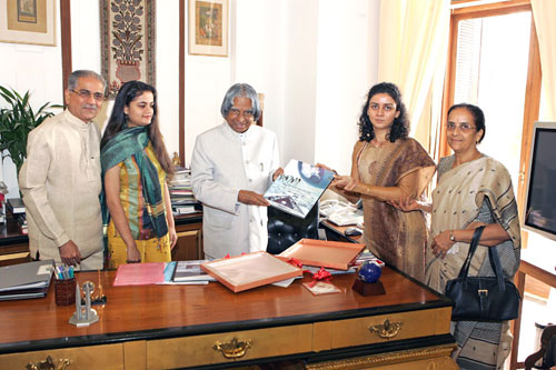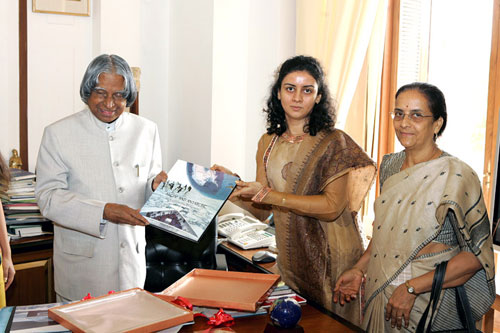 Urmi Popat's family's joy knew no bounds when they got the wonderful opportunity to present to the Honourable President Dr. A P J Abdul Kalam, her book “ Arctic and Antarctic- Journeys to the extremities of the earth” at the Rashtrapati Bhuvan. Dr. Kalam's rich experiences as a scientist and keen involvement in India 's role in the research works and environment in Antarctica made them see these places in a new light. They felt deeply honoured, when the President gave so many valuable moments of his precious time to discuss their experiences of the journeys and see their book on these Polar Regions . They said that his blessings will make an immense difference to their lives and give them the spirit and encouragement to move on with rejuvenated zeal.